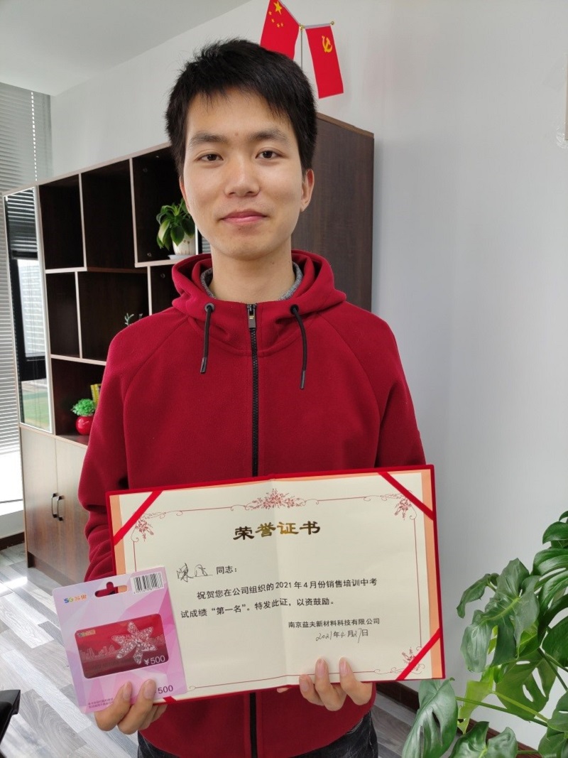 !北敬慰荚嚦煽?jī)第一名的業(yè)務(wù)員獲得了500元蘇果卡獎(jiǎng)勵(lì),并頒發(fā)榮譽(yù)證書。獲獎(jiǎng)業(yè)務(wù)員表示:“感謝公司給予寶貴的培訓(xùn)資源和培訓(xùn)機(jī)會(huì)、感謝劉總辛苦的批閱,自己會(huì)再接再厲?div id="d48novz" class="flower left">