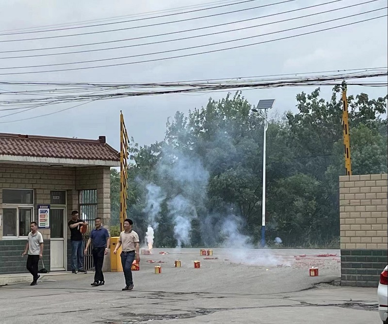 在10:58分吉時,劉總與張總同時為開工儀式點炮,鞭炮聲一響,代表著益夫三廠-統(tǒng)匯建材正式開工!